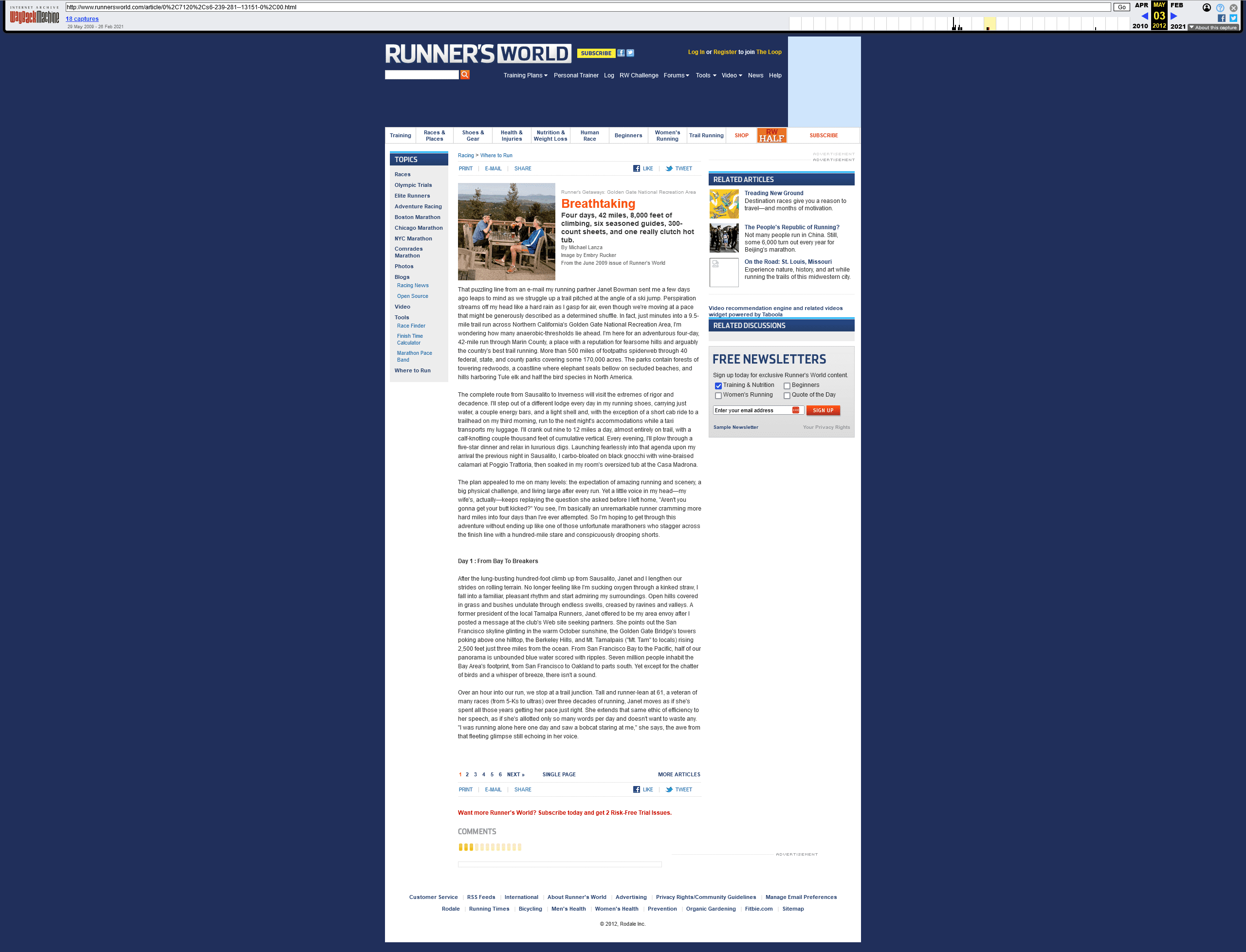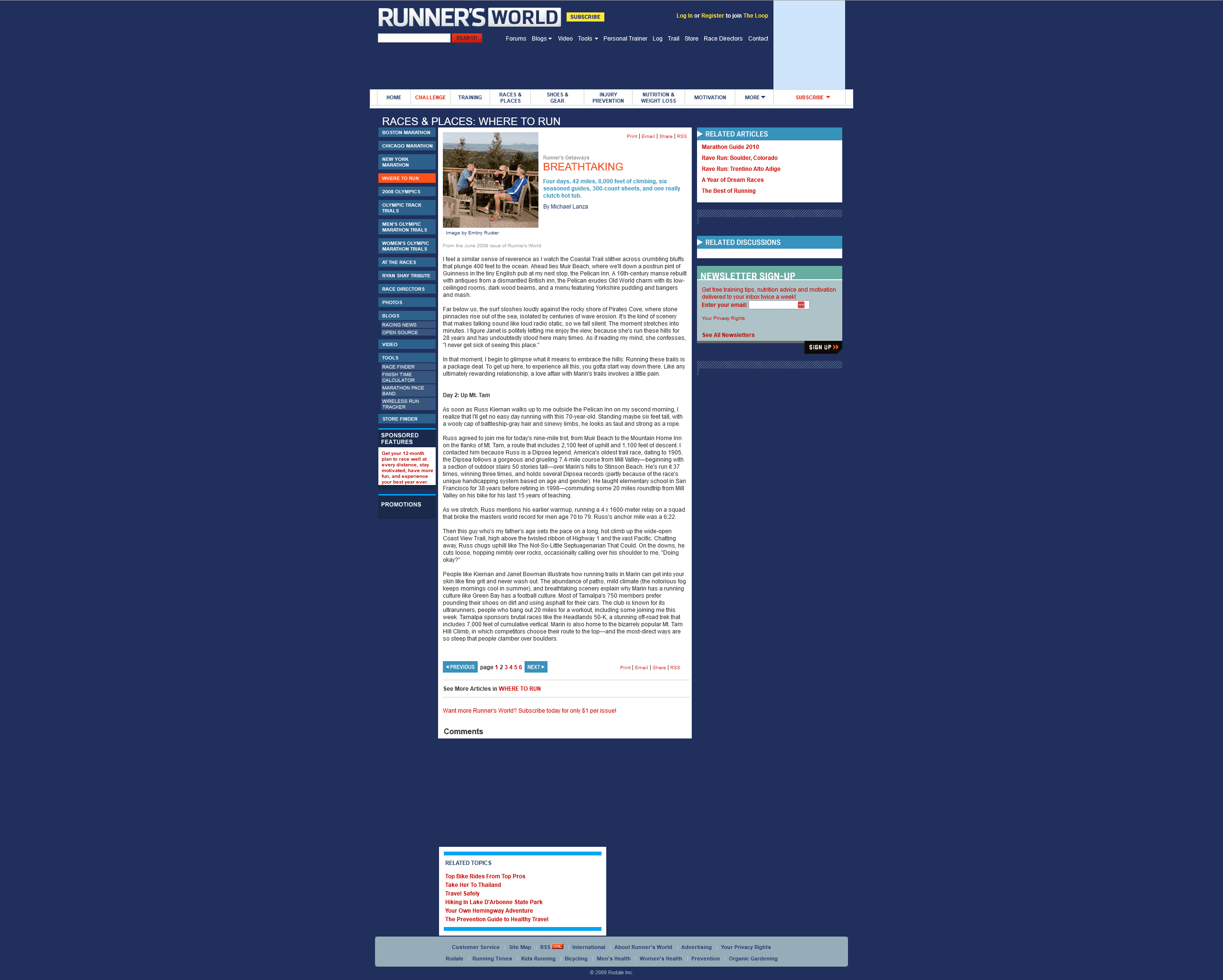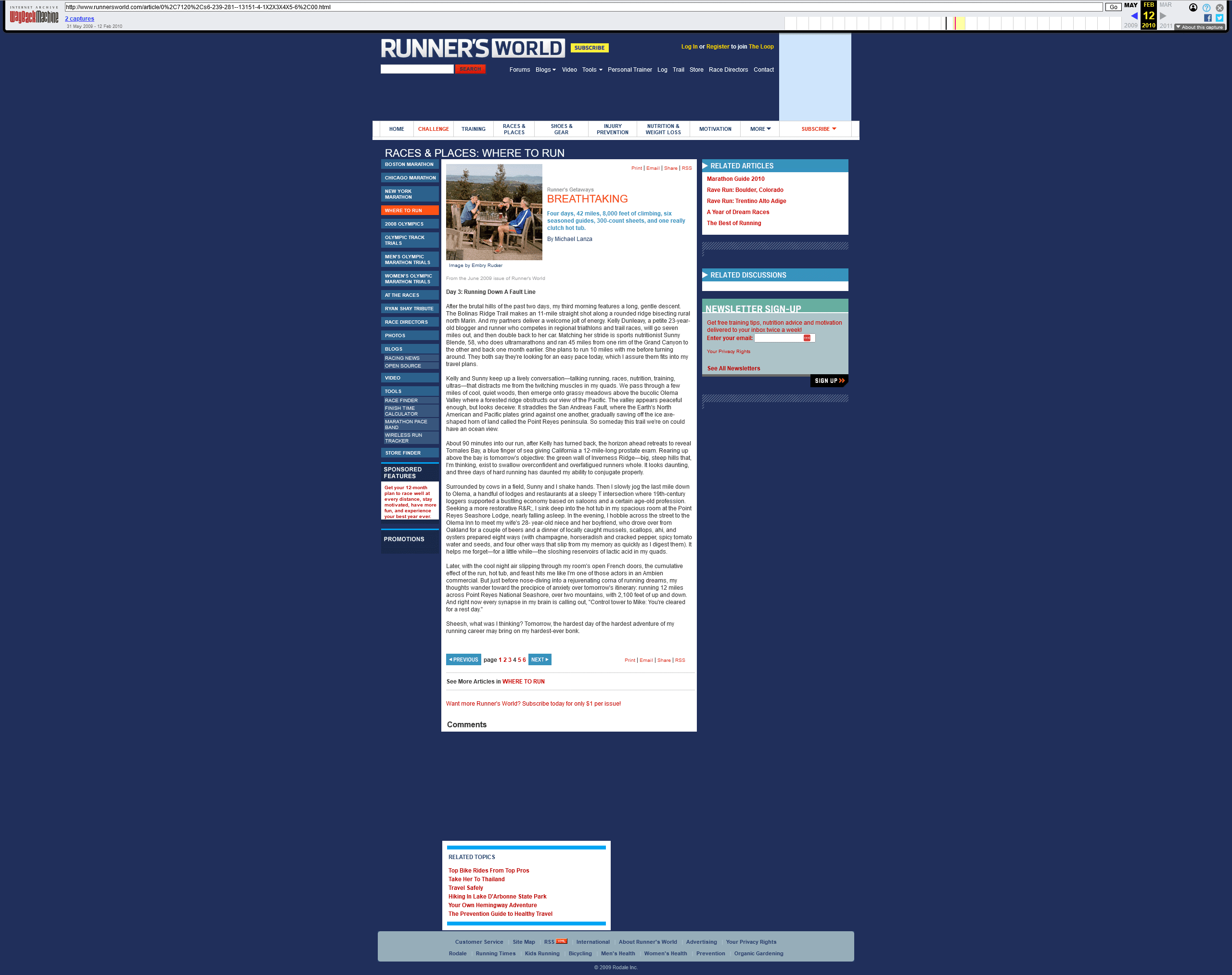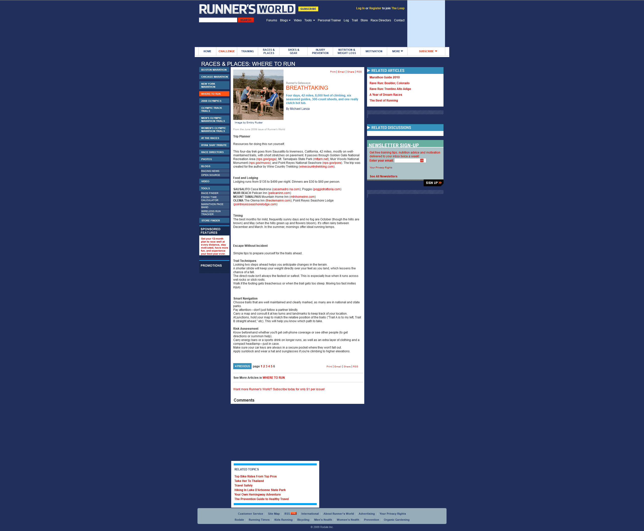 From “Breath Taking–It’s the Ultimate Runner’s Getaway” in Runner’s World (June, 2009)
